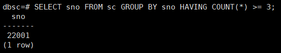 1 | SELECT DISTINCT sno FROM sc WHERE score < 60; |