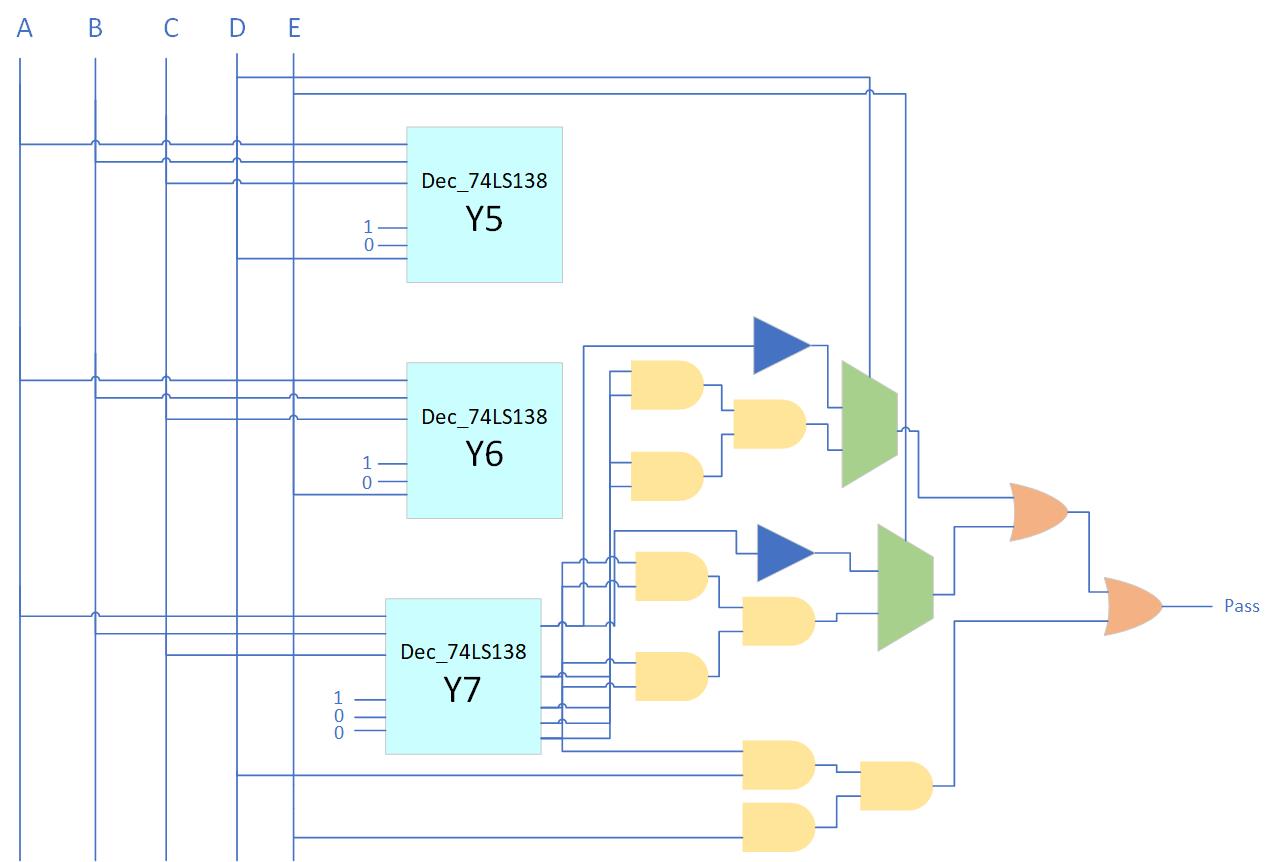 74LS138 和 74LS139 两种译码器,以及若干基本逻辑门,完成 5 输入多数表